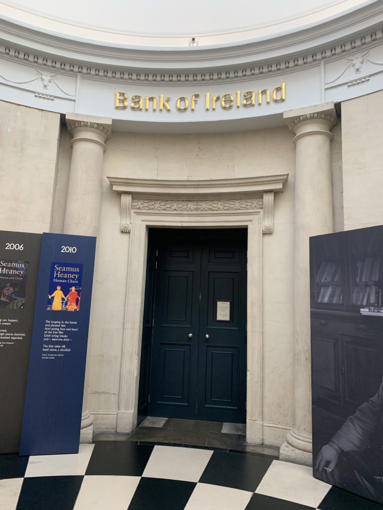 街をぶらぶらしていて、たまたま入ったアイルランド銀行。