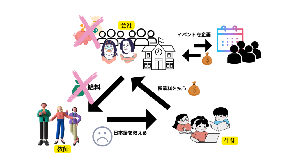 日本語を学びたい生徒が日本語学校(会社)に授業料を払う。